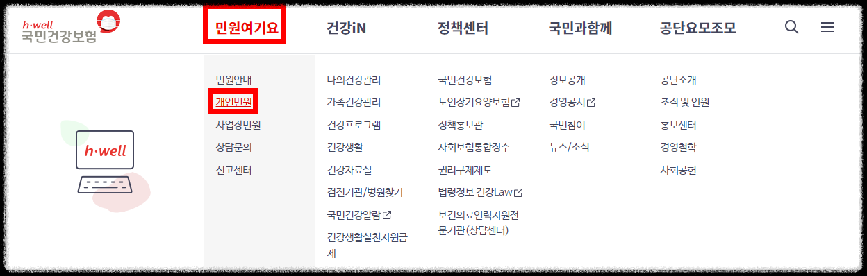 로그인에 성공하셨다면 [민원여기요 - 개인민원]을 클릭해주세요.