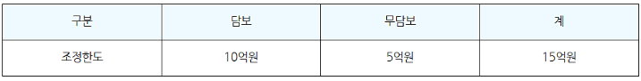 새출발기금의 채무조정 한도는 담보 10억원, 무담보 5억원으로 총 15억원입니다.