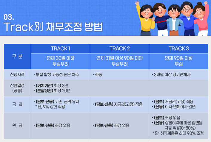- 채무조정 이후에도 허위서류 제출, 고의적 연체 등이 발견될 경우 채무조정 즉시 무효화